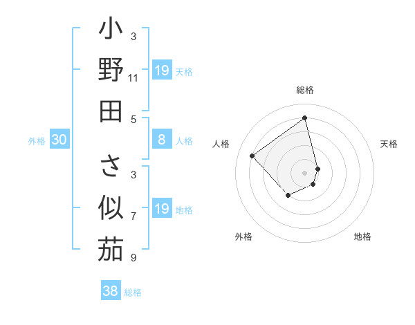 小野田 さ似茄さんの総格は38画の4点!