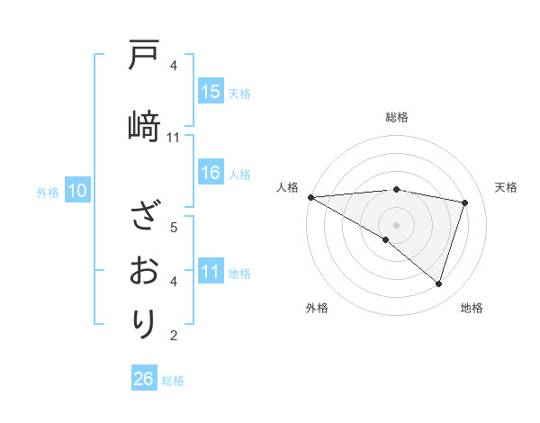戸﨑 ざおりさんの総格は26画の2点!