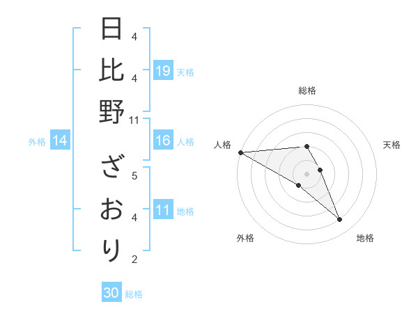 日比野 ざおりさんを姓名の画数から五運を鑑定