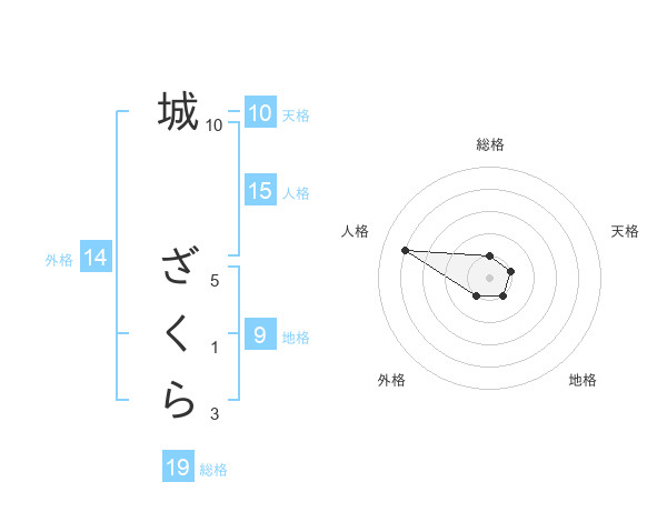城 ざくらさんの総格は19画の1点!