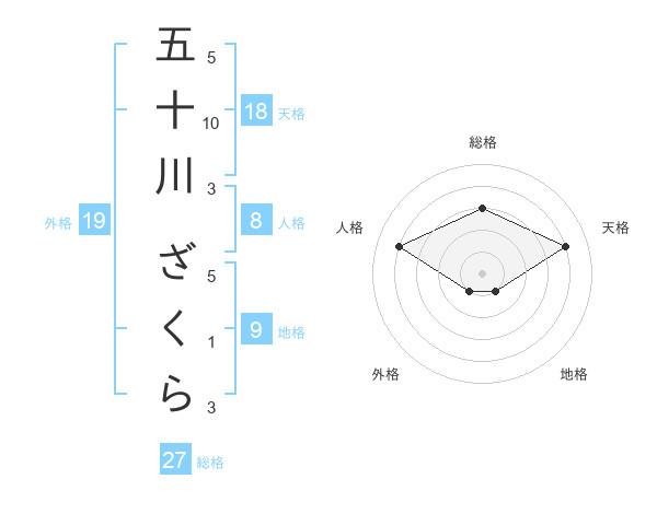 五十川 ざくらさんを姓名の画数から五運を鑑定