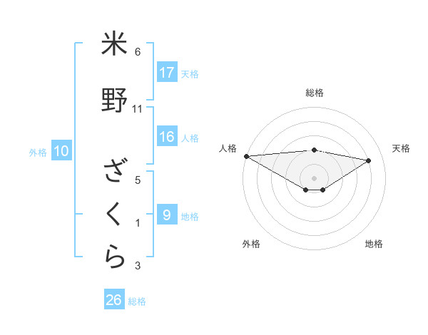 米野 ざくらさんを姓名の画数から五運を鑑定