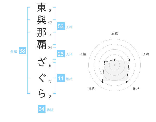 東與那覇 ざぐらさんを姓名の画数から五運を鑑定