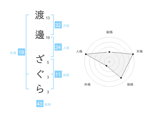 渡邊 ざぐらさんの総格は43画の2点!