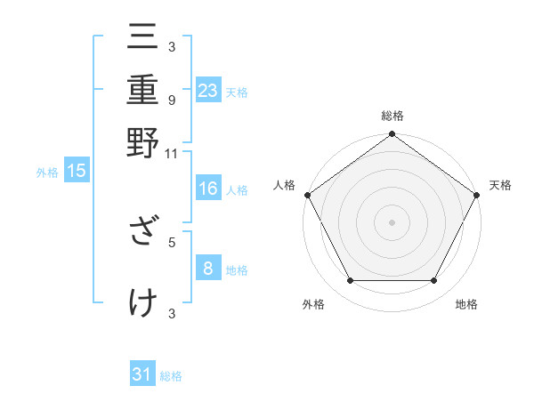 三重野 ざけさんを姓名の画数から五運を鑑定