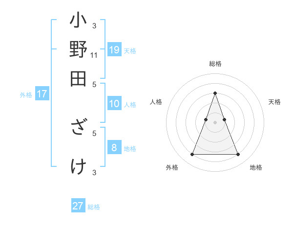 小野田 ざけさんを姓名の画数から五運を鑑定