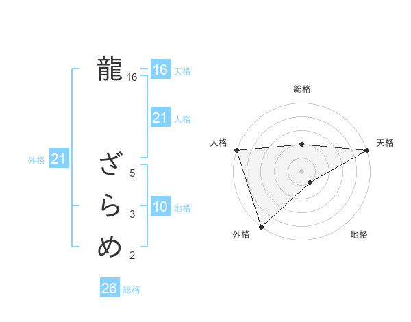 龍 ざらめさんの外格は21画の5点!