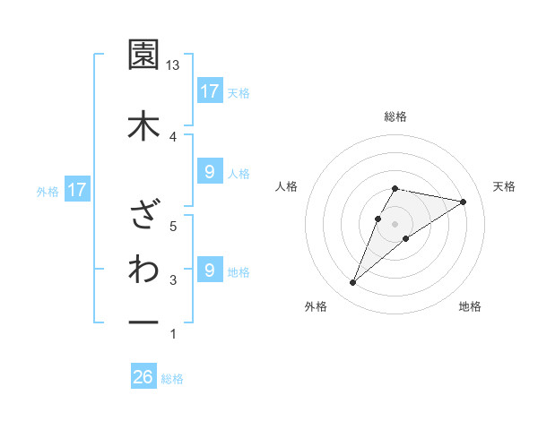 園木 ざわーさんを姓名の画数から五運を鑑定