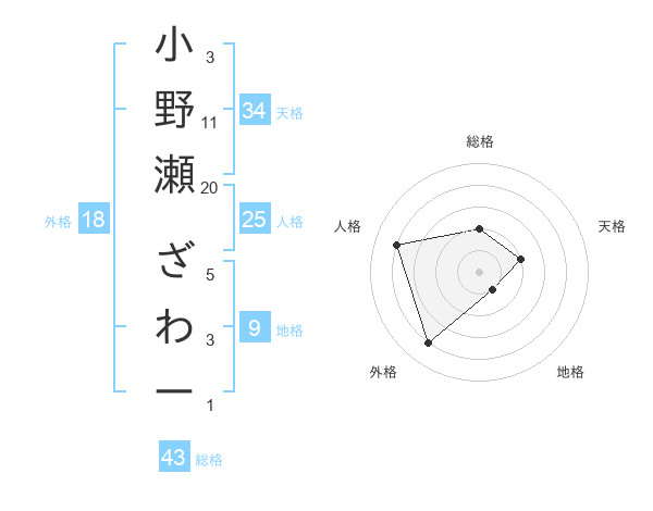 小野瀬 ざわーさんを姓名の画数から五運を鑑定
