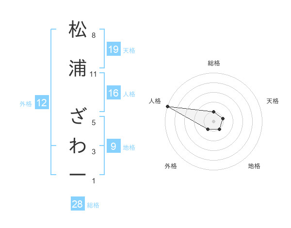 松浦 ざわーさんを姓名の画数から五運を鑑定