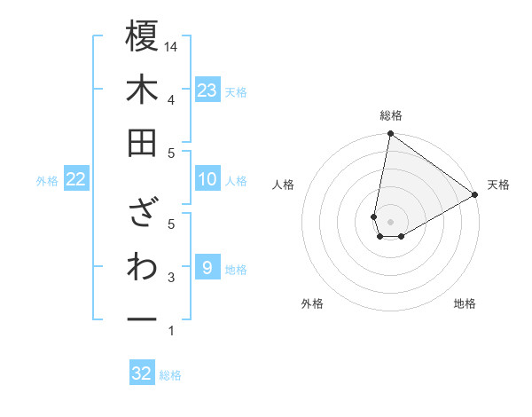 榎木田 ざわーさんを姓名の画数から五運を鑑定