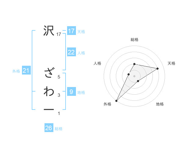 沢 ざわーさんを姓名の画数から五運を鑑定