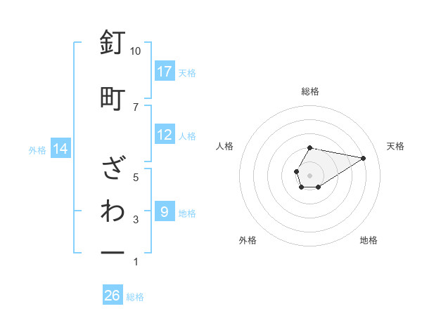 釘町 ざわーさんを姓名の画数から五運を鑑定