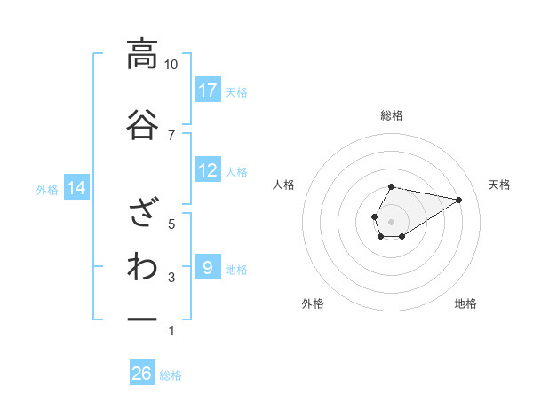 高谷 ざわーさんを姓名の画数から五運を鑑定