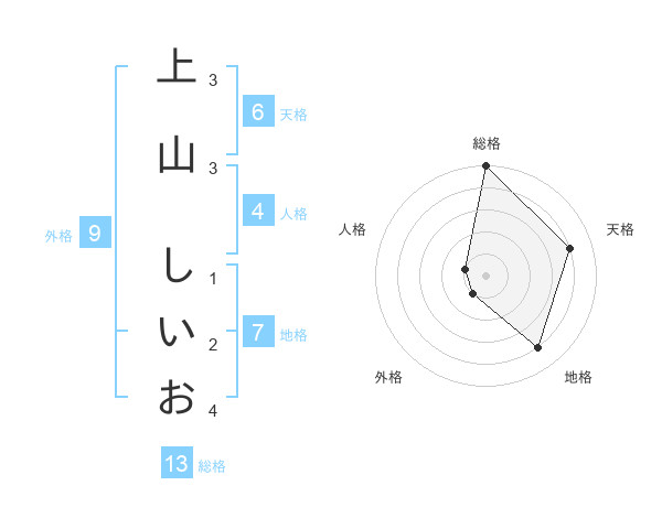 上山 しいおさんの総格は13画の5点!
