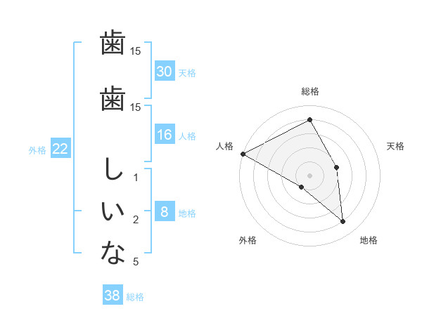 歯歯 しいなさんを姓名の画数から五運を鑑定