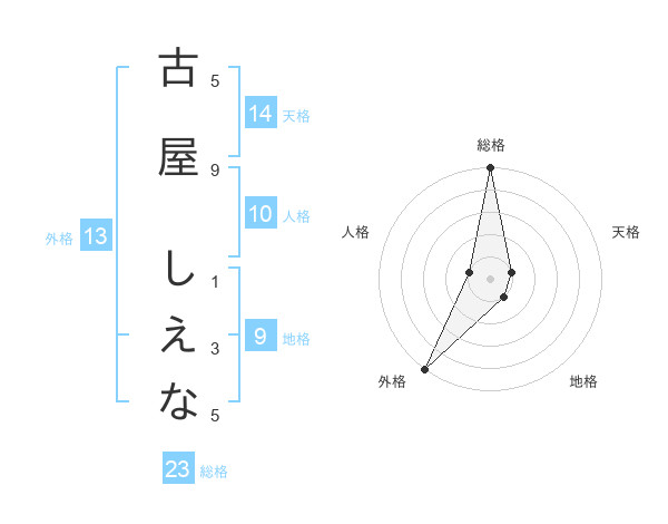 古屋 しえなさんを姓名の画数から五運を鑑定