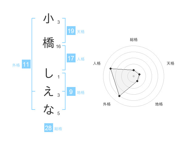 小橋 しえなさんを姓名の画数から五運を鑑定
