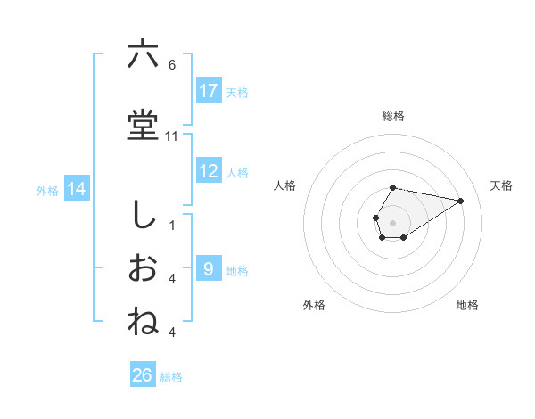 六堂 しおねさんの外格は14画の1点!