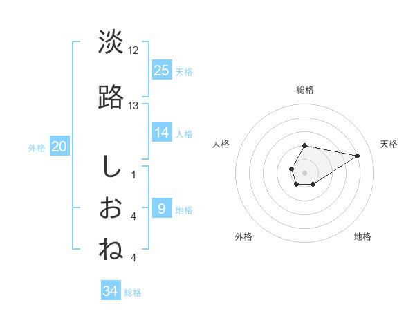 淡路 しおねさんを姓名の画数から五運を鑑定