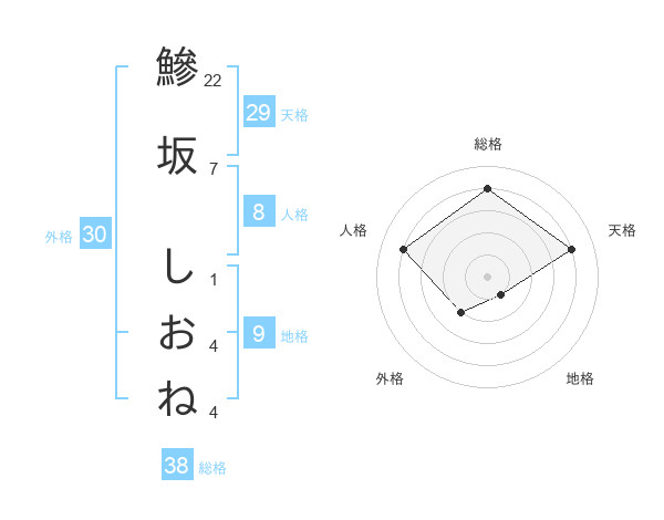 鰺坂 しおねさんの総格は38画の4点!