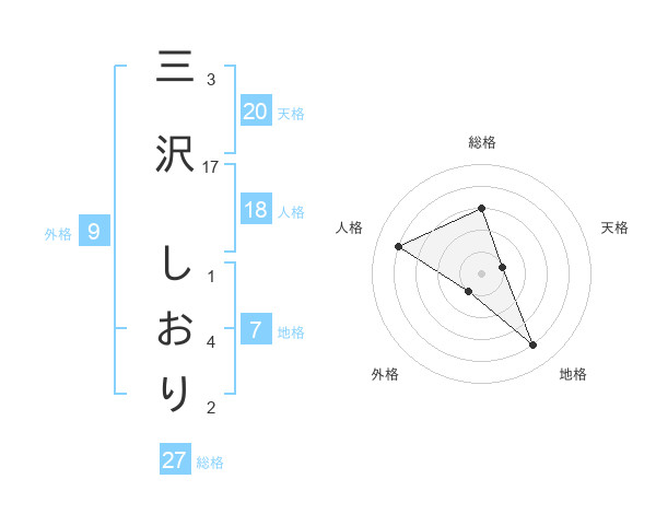 三沢 しおりさんを姓名の画数から五運を鑑定