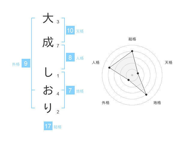 大成 しおりさんの総格は17画の4点!