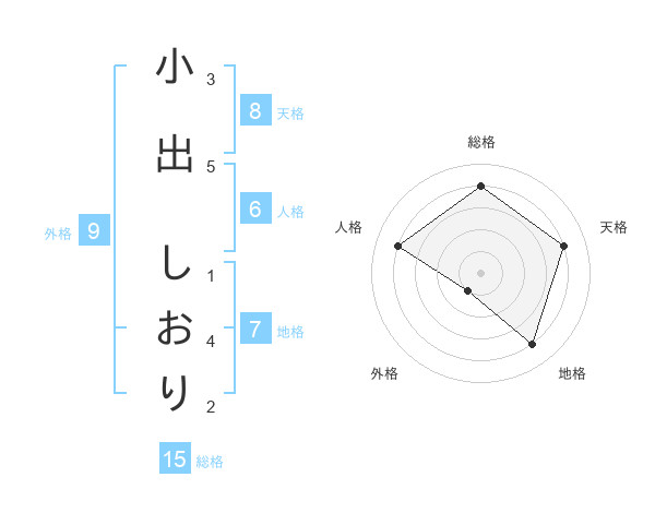 小出 しおりさんの総格は15画の4点!