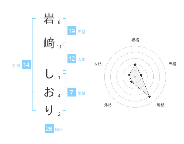 岩﨑 しおりさんを姓名の画数から五運を鑑定