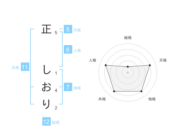 正 しおりさんの天格は5画の4点!