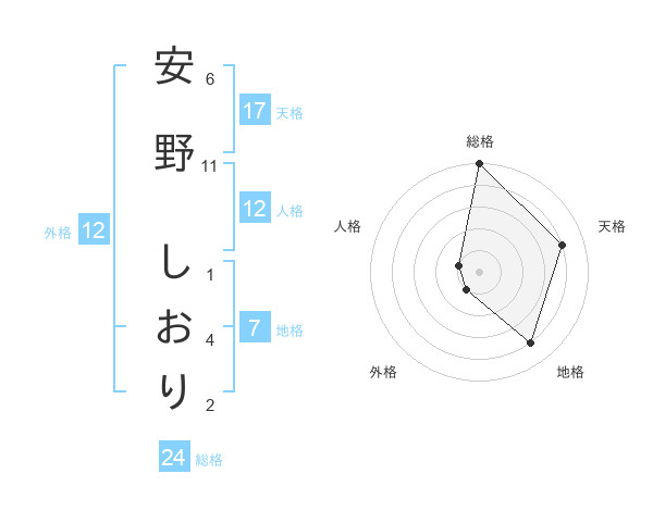 安野 しおりさんの天格は17画の4点!