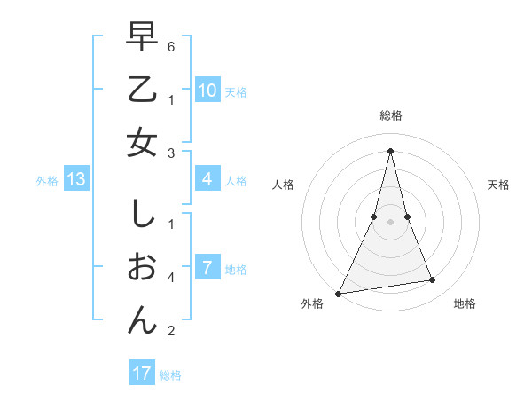 早乙女 しおんさんを姓名の画数から五運を鑑定