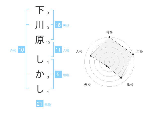 下川原 しかしさんを姓名の画数から五運を鑑定