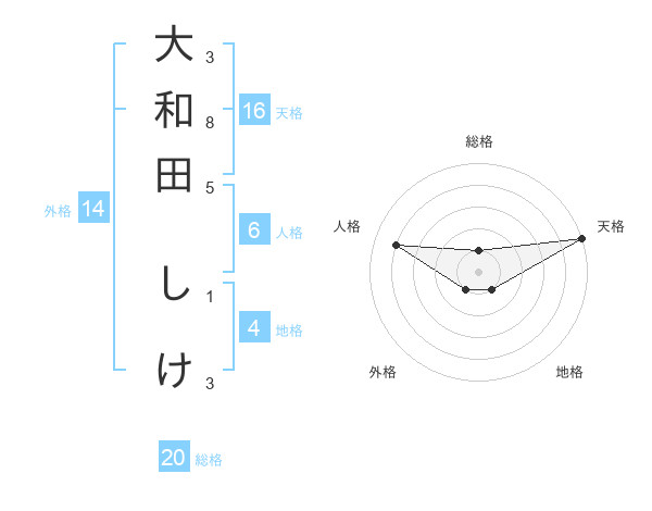大和田 しけさんの総格は20画の1点!