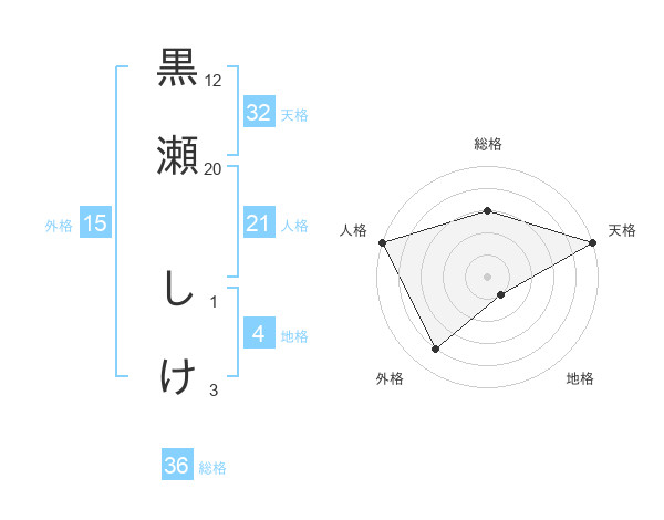 黒瀬 しけさんを姓名の画数から五運を鑑定