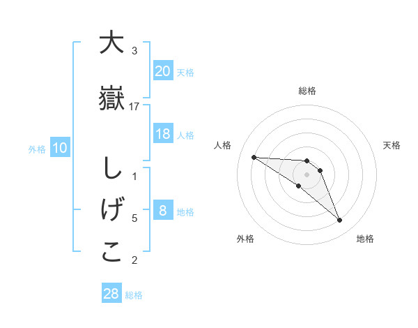 大嶽 しげこさんを姓名の画数から五運を鑑定