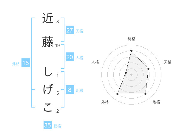 近藤 しげこさんを姓名の画数から五運を鑑定
