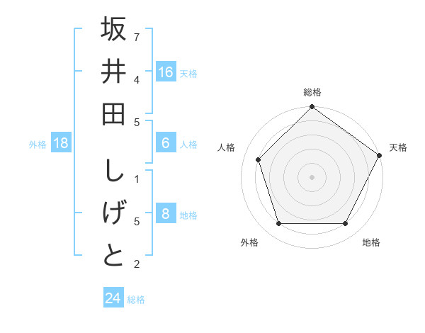 坂井田 しげとさんの総格は24画の5点!
