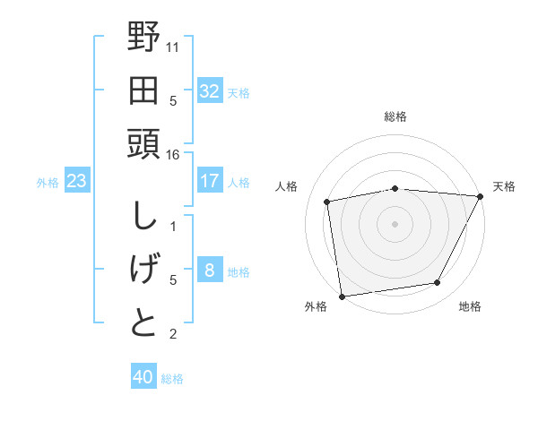 野田頭 しげとさんを姓名の画数から五運を鑑定