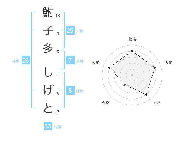 鮒子多 しげとさんを姓名の画数から五運を鑑定