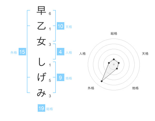 早乙女 しげみさんを姓名の画数から五運を鑑定