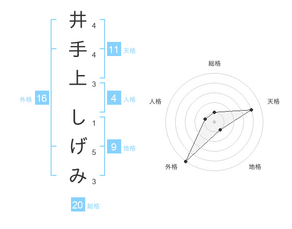 井手上 しげみさんを姓名の画数から五運を鑑定