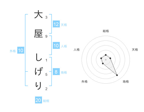 大屋 しげりさんを姓名の画数から五運を鑑定