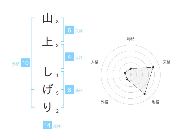 山上 しげりさんの天格は6画の4点!