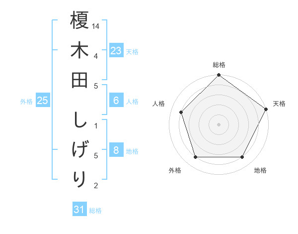 榎木田 しげりさんの総格は31画の5点