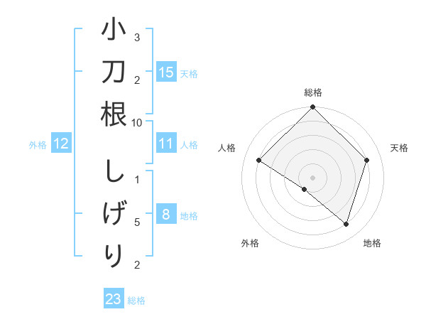小刀根 しげりさんを姓名の画数から五運を鑑定