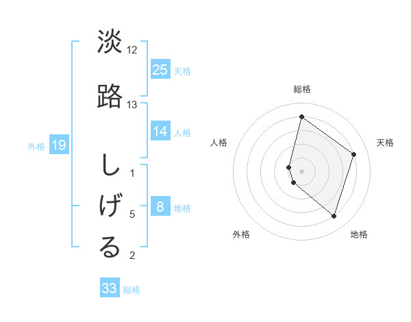 淡路 しげるさんの総格は33画の4点!