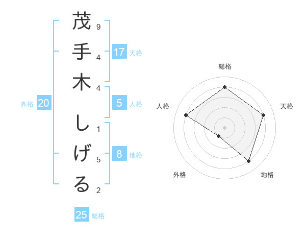 茂手木 しげるさんの地格は8画の4点!