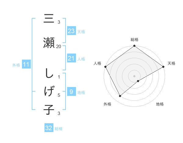 三瀬 しげ子さんを姓名の画数から五運を鑑定