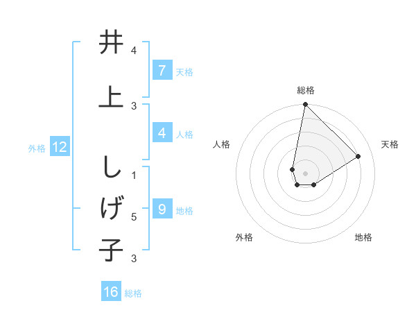 井上 しげ子さんを姓名の画数から五運を鑑定